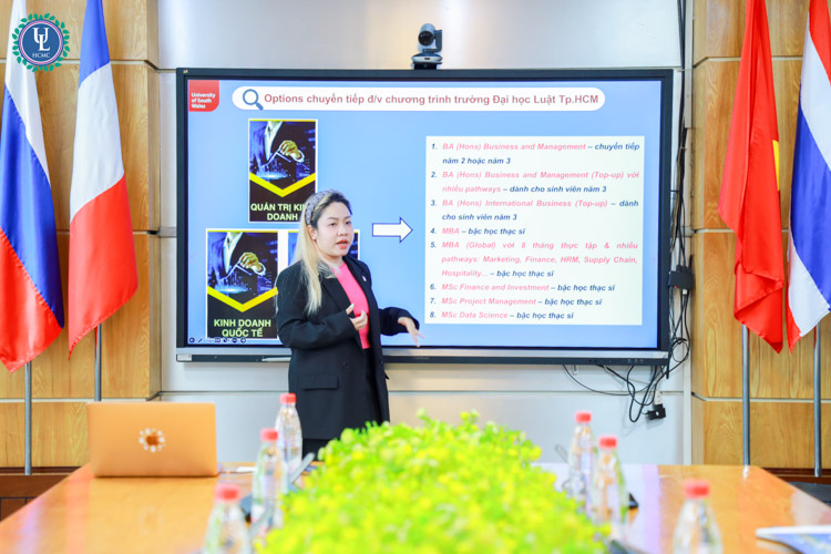 Buổi gặp gỡ không chỉ là dịp để ba bên tăng cường hiểu biết lẫn nhau mà còn mở ra nhiều triển vọng hợp tác quốc tế, góp phần nâng cao chất lượng đào tạo và mở rộng cơ hội học tập cho sinh viên, học viên Trường Đại học Luật TP.HCM. Đồng thời, sự kiện cũng khẳng định định hướng phát triển năng động, hội nhập của Nhà trường trong việc kết nối với các cơ sở giáo dục uy tín trên thế giới và mang đến những trải nghiệm học thuật đa dạng, thực tiễn cho người học.