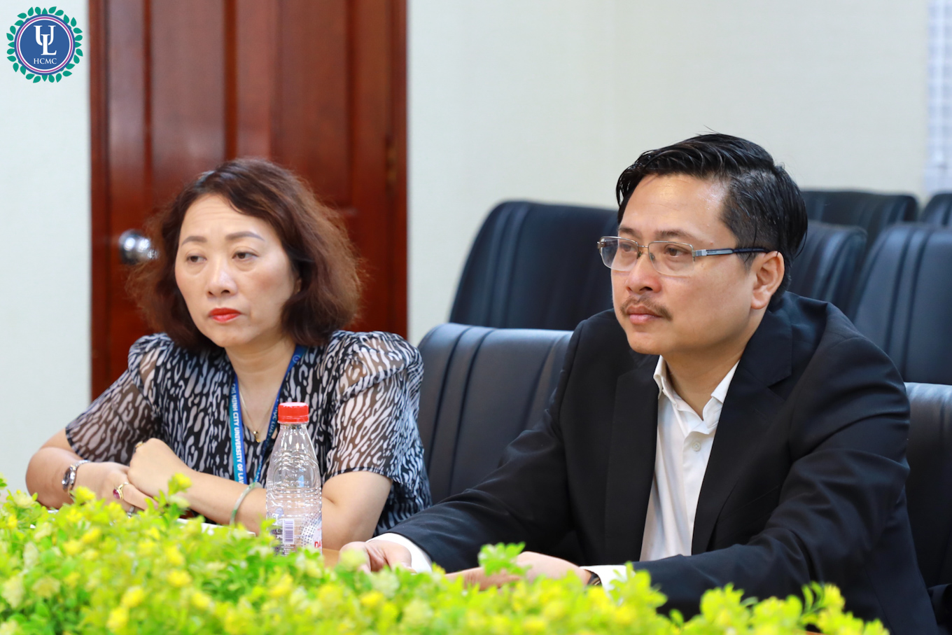Về thành phần tham dự, đại diện Trường Đại học Luật TP.HCM có sự hiện diện của PGS. TS. Trần Việt Dũng - Phó hiệu trưởng Nhà trường, TS. Lê Thị Thúy Hương - Trưởng Phòng Khoa học công nghệ và Hợp tác phát triển, ThS. Vũ Đức Nghĩa Hưng - giảng viên kiêm nhiệm chuyên viên Viện Đào tạo quốc tế và ThS. Nguyễn Thu An - Chuyên viên Phòng Khoa học công nghệ và Hợp tác phát triển.