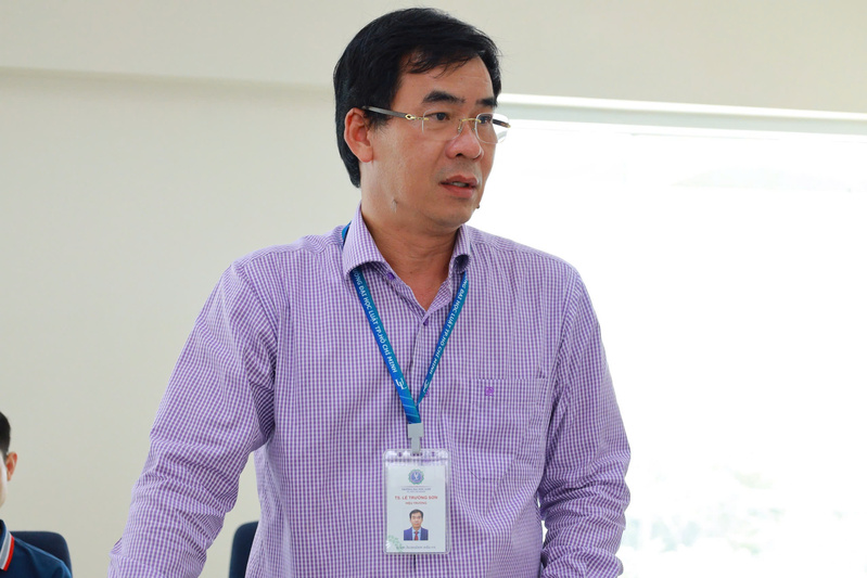 TS. Lê Trường Sơn - Hiệu trưởng nhà trường báo cáo kết quả thực hiện dự án Cơ sở 3- Trường Đại học Luật TP.HCM tới đoàn kiểm tra