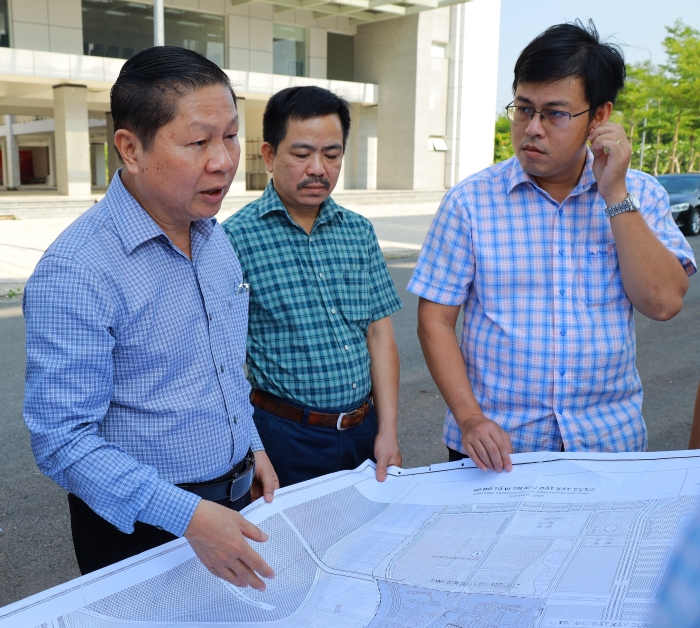 Thứ trưởng Lê Tấn Dũng cùng đoàn kiểm tra tiến hành khảo sát quy mô Cơ sở 3 - Trường Đại học Luật TP.HCM